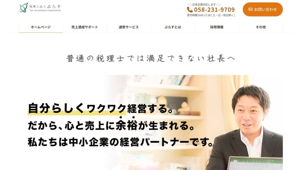 税理士法人ぷらすは岐阜市に拠点を構える税理士事務所で、税務や節税だけでなく経営全体を見据えた支援を行っています。